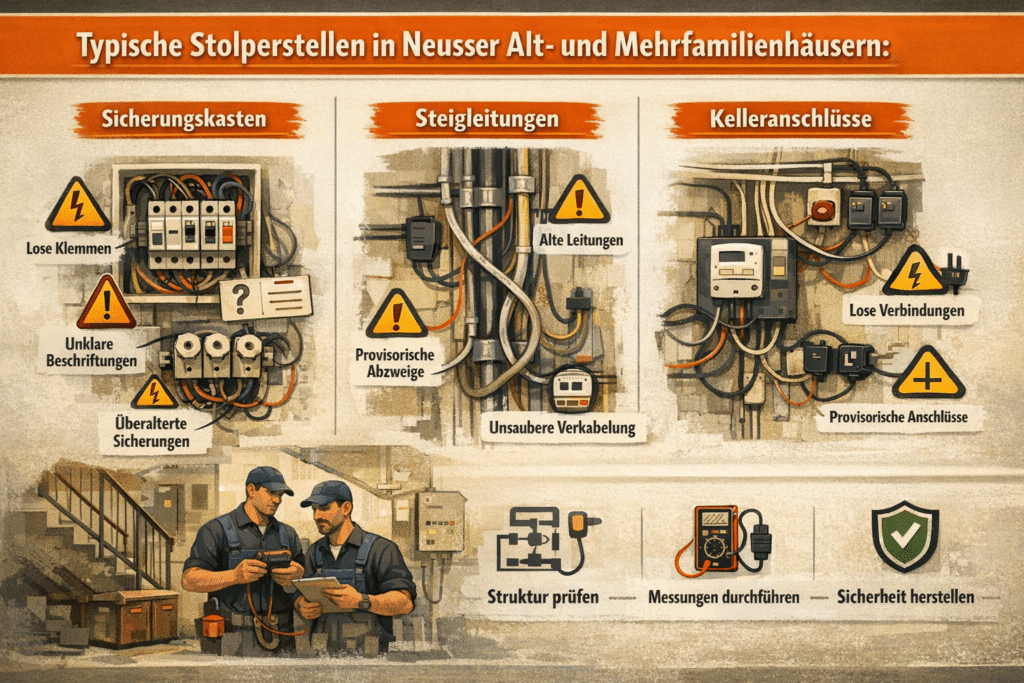 elektriker neuss – Typische Stolperstellen in Neusser Alt- und Mehrfamilienhäusern: Sicherungskasten, Steigleitungen, Kelleranschlüsse
